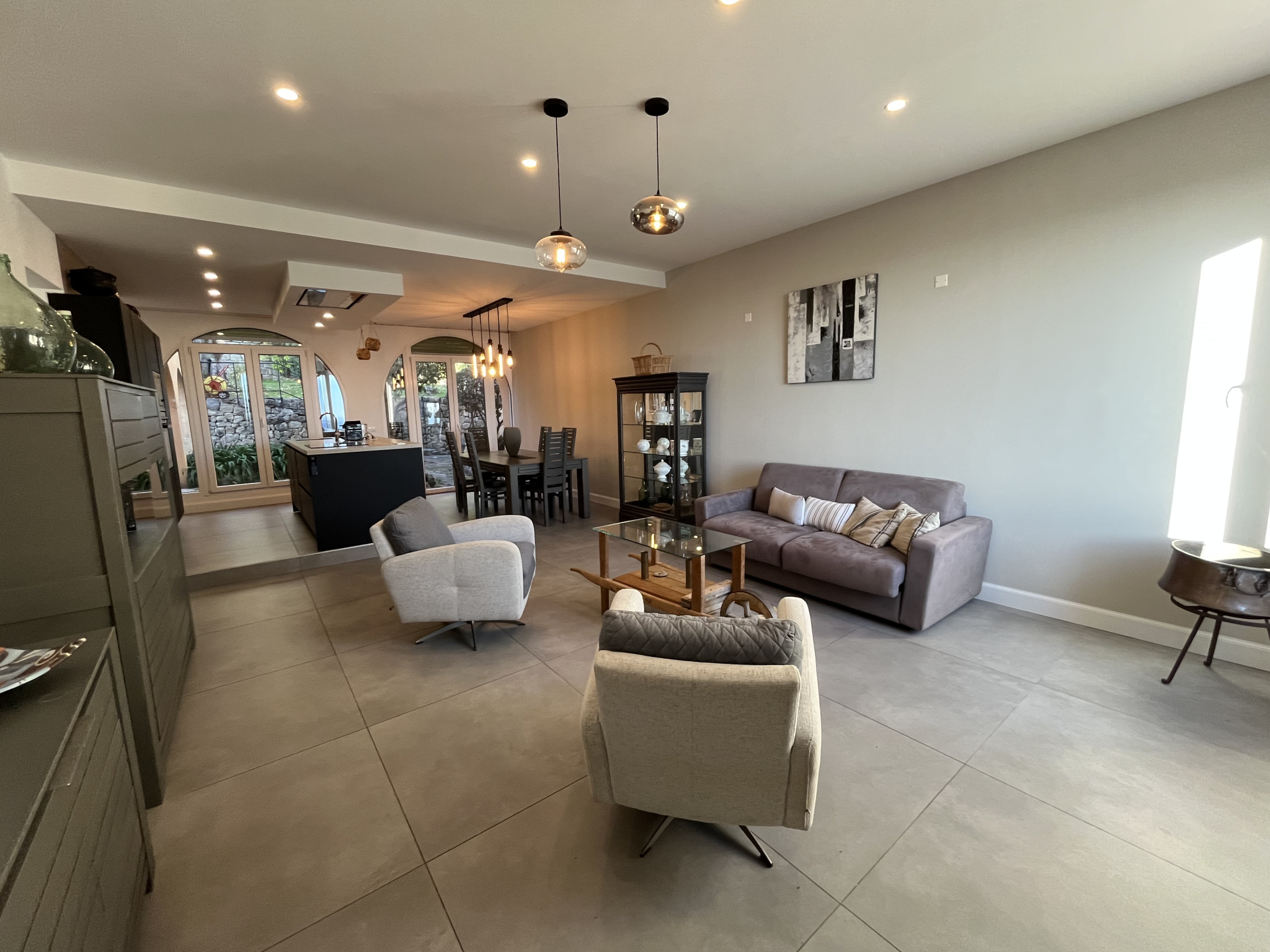 - Un hall avec rangements, un beau salon / salle à manger avec une cuisine américaine équipée, , un dégagement, une grande chambre avec salle de bains et dressing, une chambre avec salle d'eau et WC, un WC indépendant