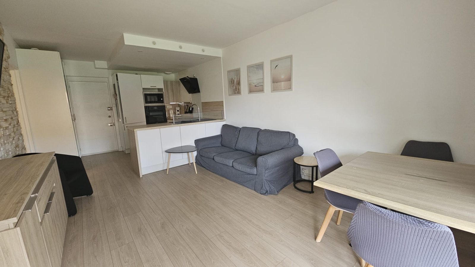 L'agence Parfum d'Immobilier vous présente à la location un appartement MEUBLE de type 2/3 pièces d'environ 46m² composé d'un séjour avec cuisine ouverte, une chambre, une salle d'eau avec WC, un bureau, un dégagement et une terrasse.
