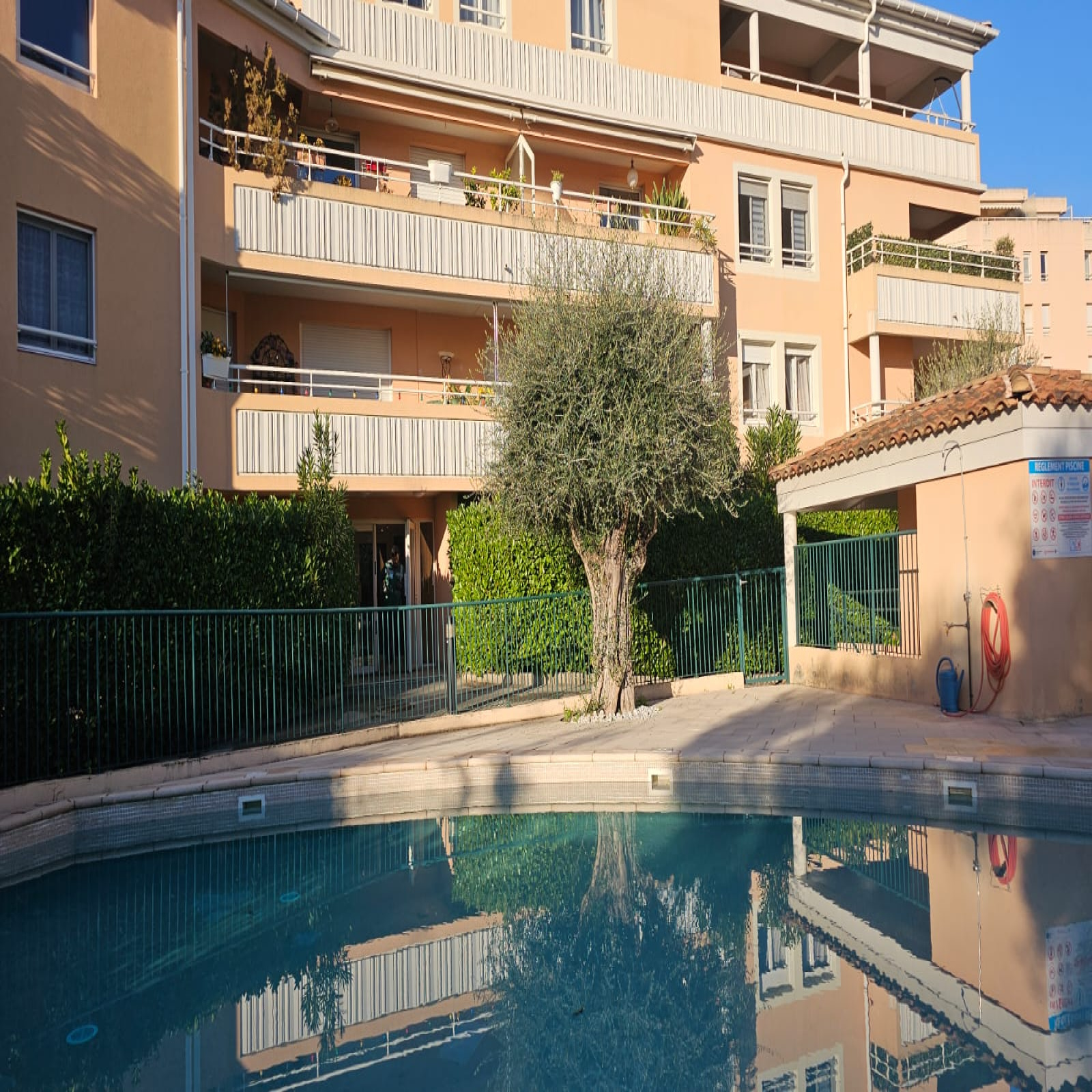 GRASSE SUD, dans une belle résidence sécurisée avec piscine, tennis et parc, charmant DEUX PIECES au dernier étage avec ascenseur d'un petit bâtiment, comprenant :