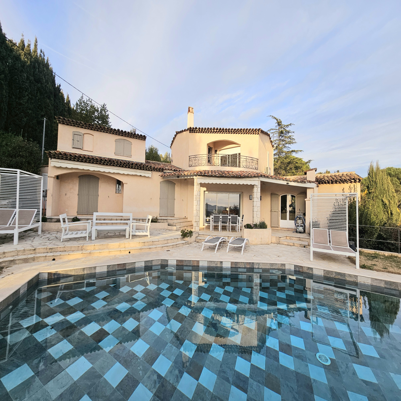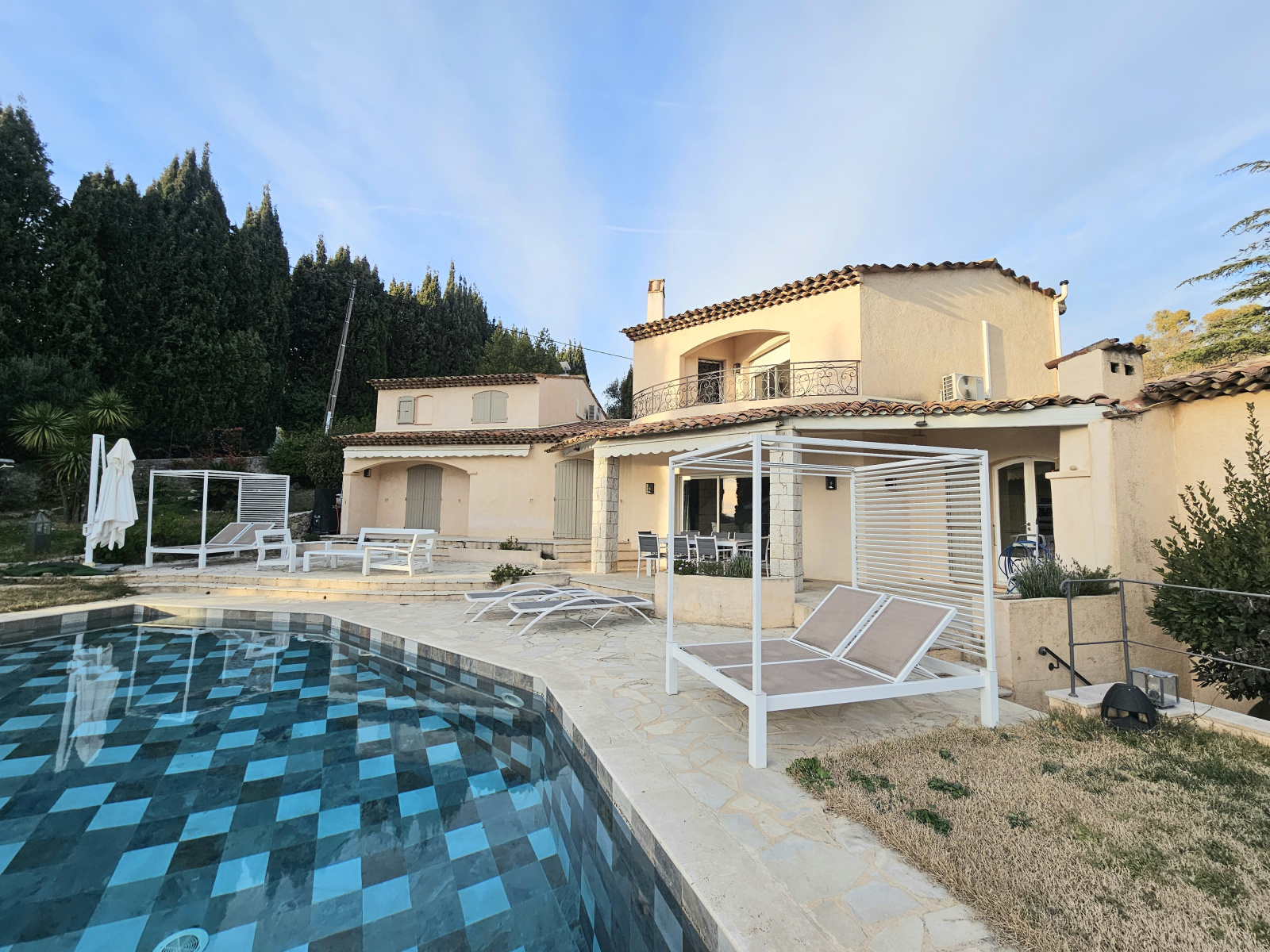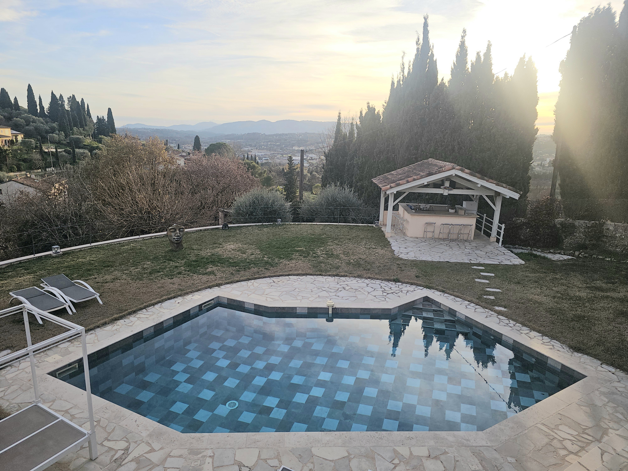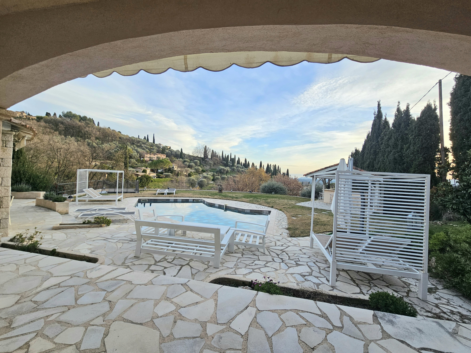 QUARTIER SAINT MATHIEU, belle propriété individuelle sur un terrain de 3200 m² environ, bénéficiant d'une position dominante avec une belle vue dégagée sur les collines, et comprenant :