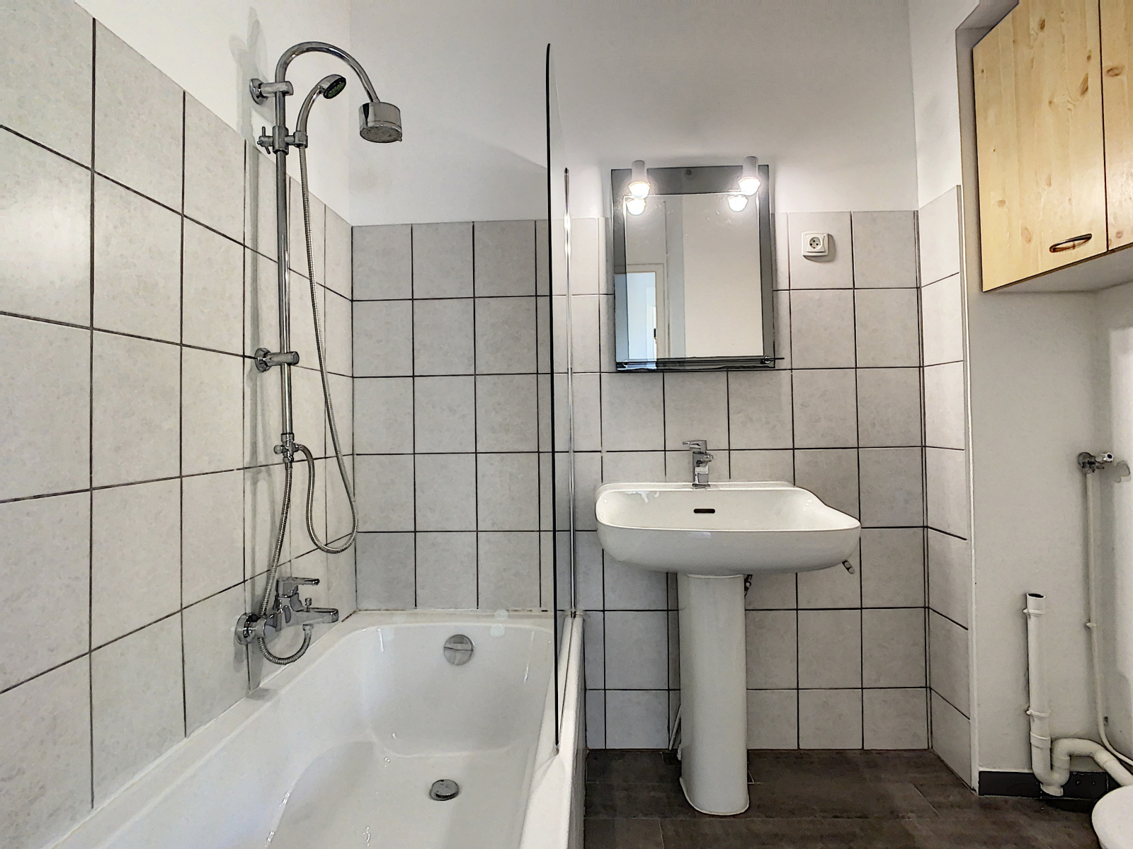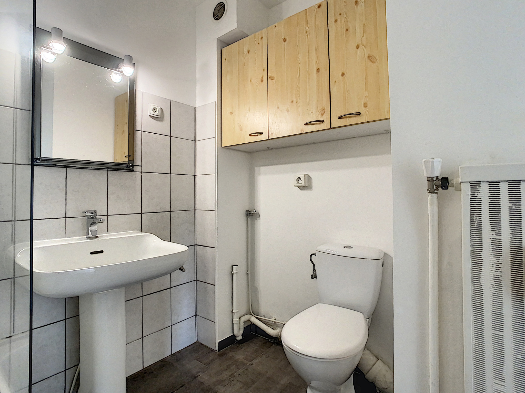 Cet appartement se compose d'une entrée avec placard, une pièce principale avec placard, une cuisine aménagée indépendante, une salle de bains avec WC.