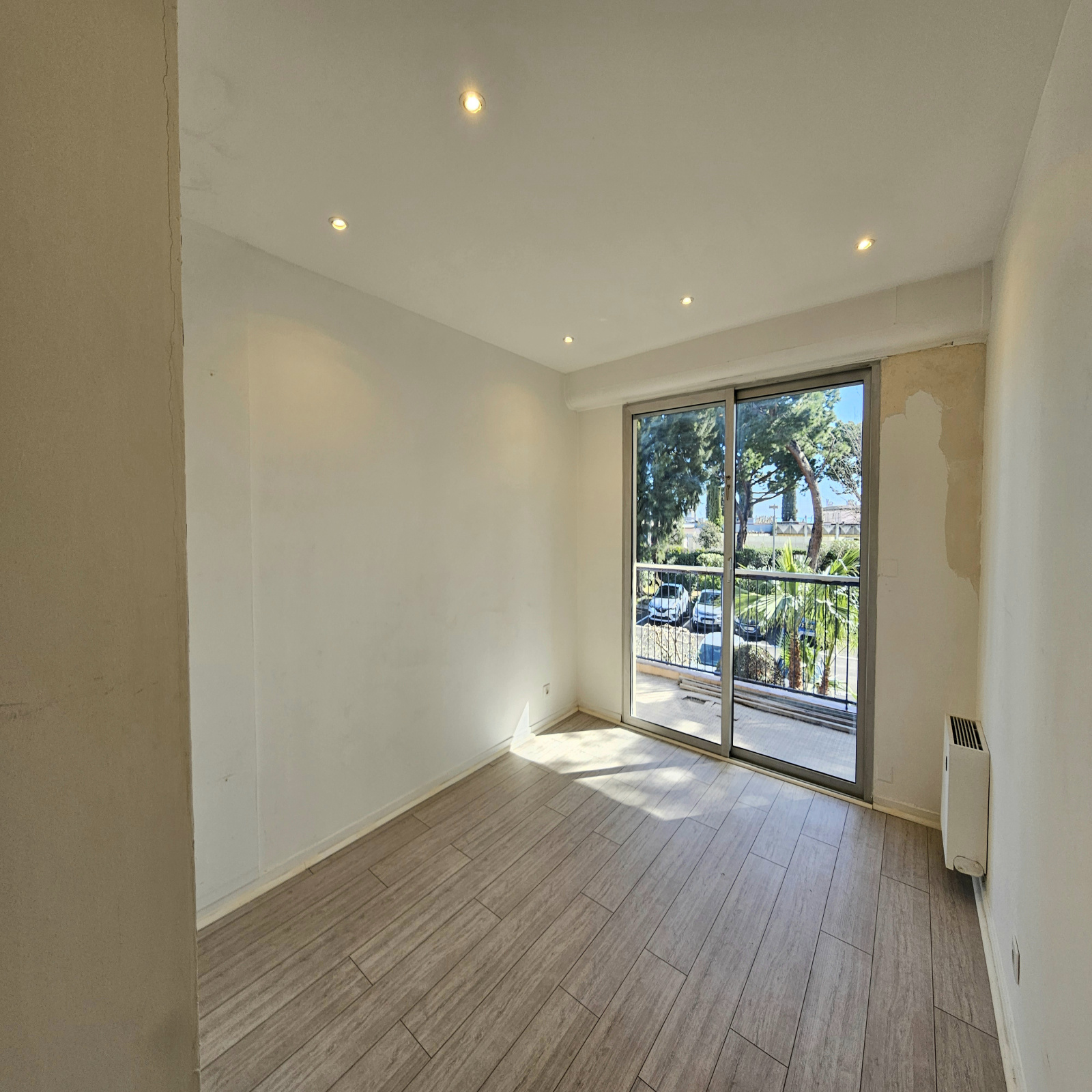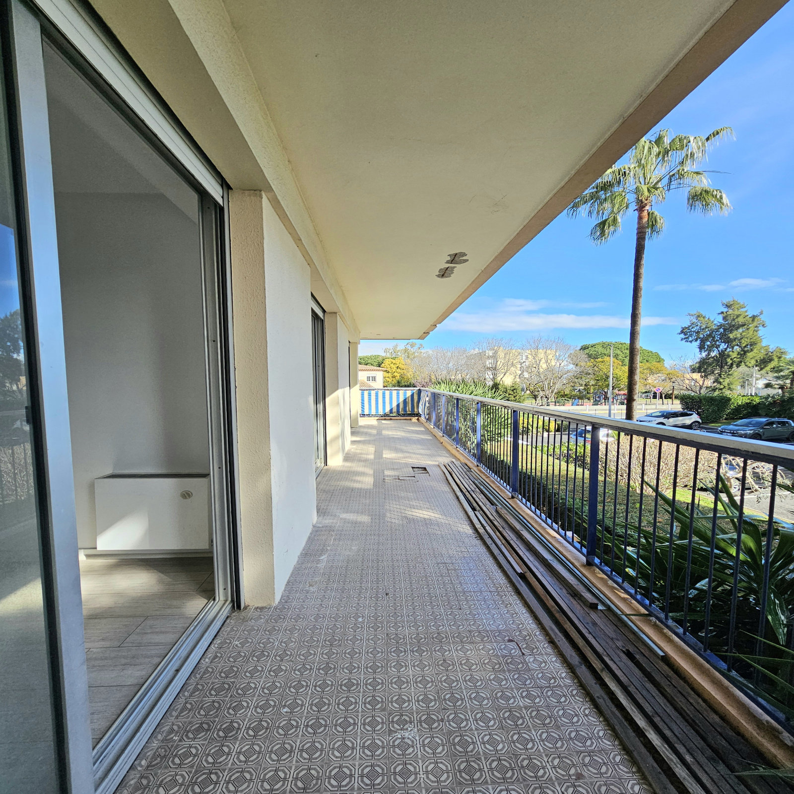 - Une entrée avec placards, un salon, une cuisine et 2 chambres donnant sur une terrasse d'angle, une salle d'eau, un WC indépendant