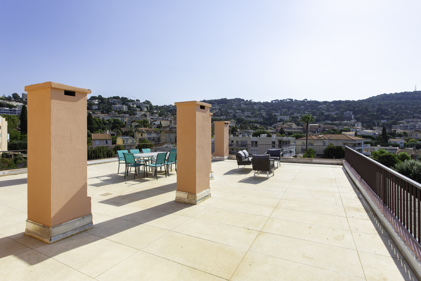 Au coeur d'un un joli quartier du CANNET, très bel appartement entièrement restauré et meublé situé au dernier étage avec ascenseur, bénéficiant d'une grande terrasse de 121 m² donnant sur la mer !